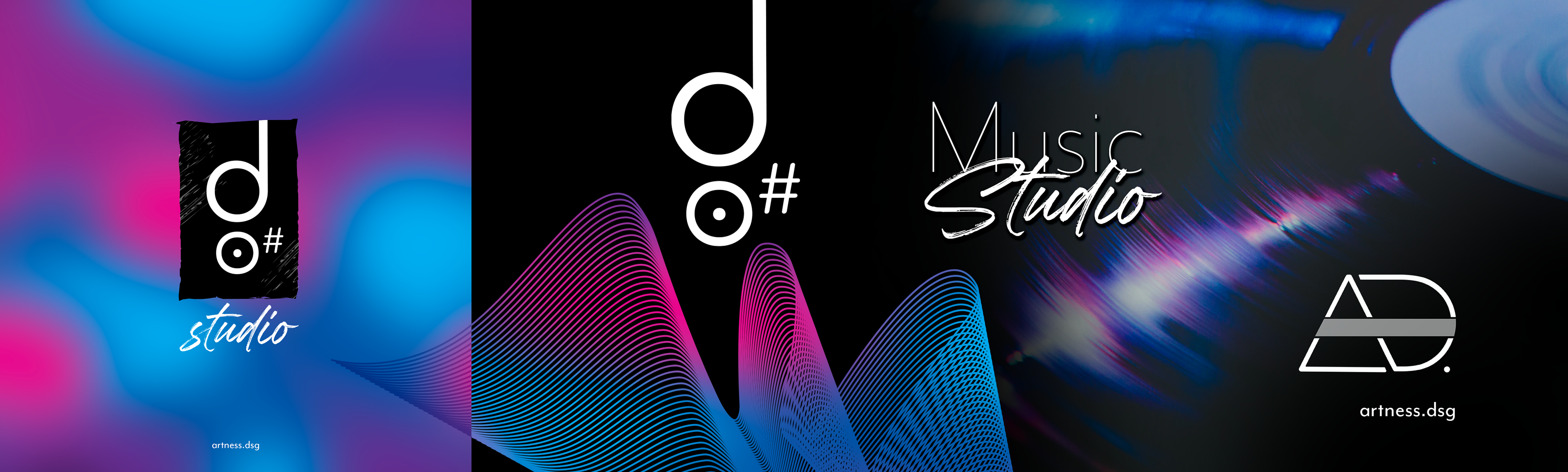Identité visuelle d'un studio de musique & création de planches de présentation pour les réseaux sociaux. - Projet perso-