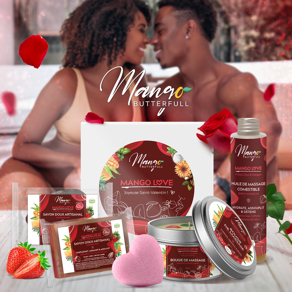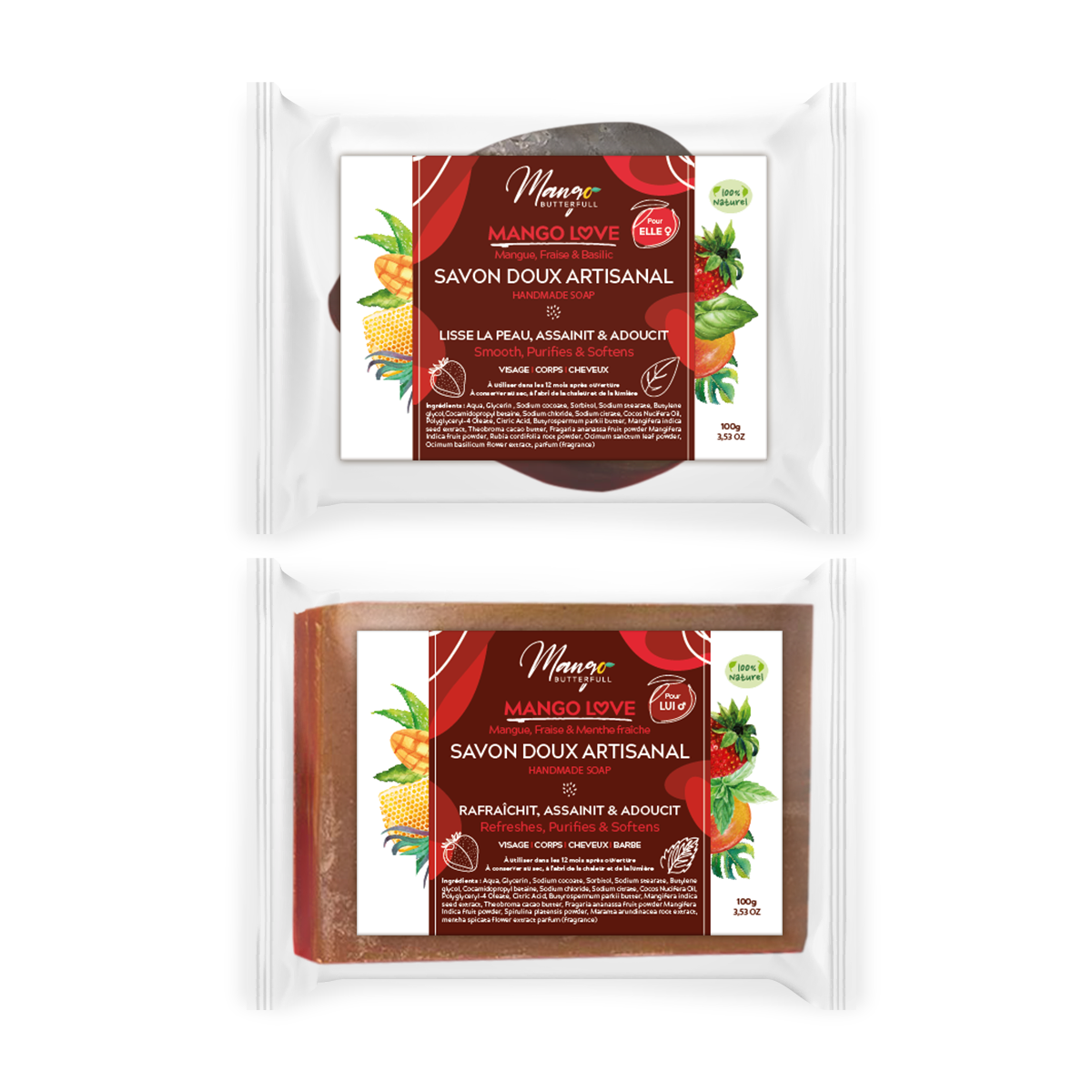 Création de l'identité visuelle de la gamme Mango Love, des illustrations, des étiquettes des produits et des visuels pour la promo sur les réseaux sociaux. Cadre : Agence Sacerdos (+exemple de feeds instagram réalisés)